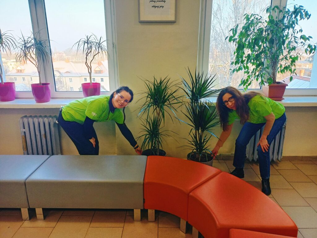 Wolontariuszki swoją pracą wsparły podopiecznych Stowarzyszenia Rodzin i Przyjaciół Osób z Niepełnosprawnością Intelektualną „Chata z pomysłami”. Uporządkowały przestrzeń i przygotowały salę do zajęć z integracji sensorycznej, sprzątając zarówno wnętrze, jak i teren przed budynkiem. Dzięki ich pracy podopieczni z trudnościami w poruszaniu mogli bez przeszkód dotrzeć do sali, gdzie odbyły się zajęcia muzykoterapeutyczne i relaksacyjne z użyciem kolumny wodno-świetlnej. Efektem jest stworzenie spokojnej i stymulującej atmosfery, która przynosi uczestnikom wyciszenie i relaks.